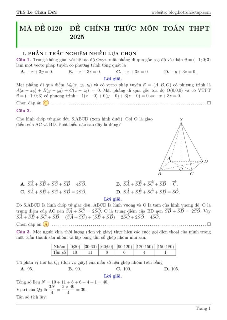Đây là bài giải chi tiết đề thi môn Toán THPT năm 2025, mã đề 0120